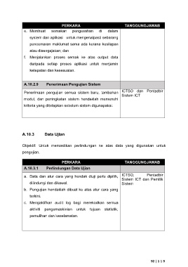 a. Data dan atur cara yang hendak diuji perlu dipilih, ICTSO, Pentadbir