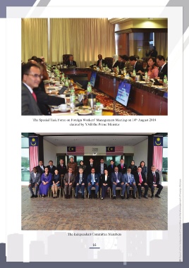 The Special Task Force on Foreign Workers' Management Meeting on 14 August 2018 th chaired by YAB the Prime Minister The Independent Committee Members 16