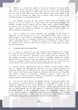 30. Absence of a comprehensive database to monitor the deployment of foreign workers