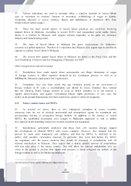 migrant labour in Malaysia. According to several NGO’s and independent social audits, forced
