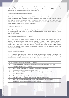 32. The current policy in sourcing PLKS workers from selected countries should be