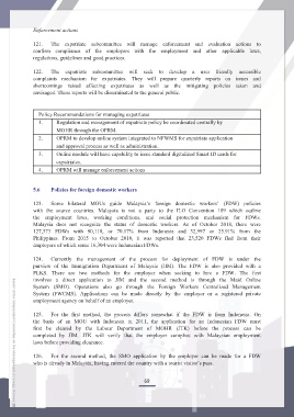 123. Some bilateral MOUs guide Malaysia’s foreign domestic workers’ (FDW) policies