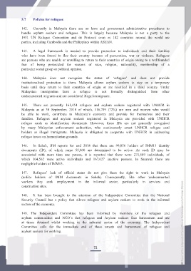 144. Malaysia does not recognize the status of ‘refugees’ and does not provide