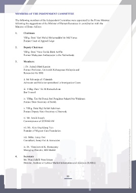 The following members of the Independent Committee were appointed by the Prime Minister