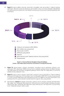 45. Rajah 11 menunjukkan taburan responden mengikut tahap pendidikan. Majoriti pekerja