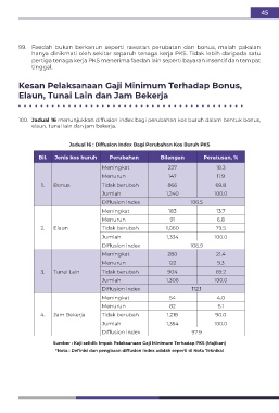 100. Jadual 16 menunjukkan diffusion index bagi perubahan kos buruh dalam bentuk bonus,