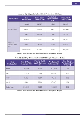 Jadual A : Gaji & Upah Serta Produktiviti Pertubuhan di Malaysia