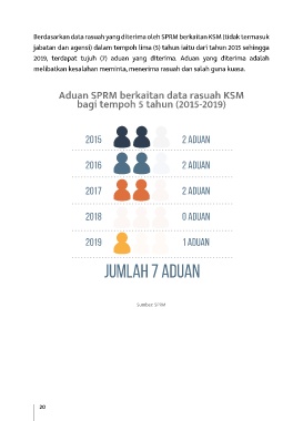 Berdasarkan data rasuah yang diterima oleh SPRM berkaitan KSM (tidak termasuk