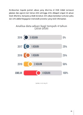 jabatan dan agensi) dari tahun 2016 sehingga 2019, didapati empat (4) aduan